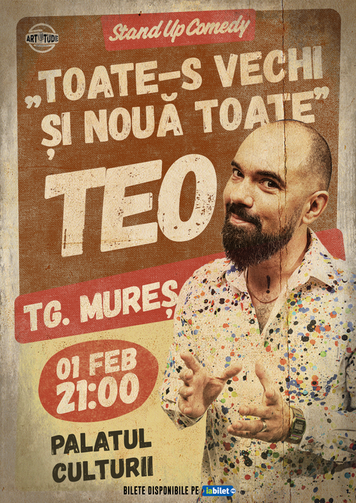 Bilete Targu Mures: Stand Up Comedy cu Teo - Toate-s vechi și nouă toate - 1 feb '23, ora 21:00 - Palatul Culturii